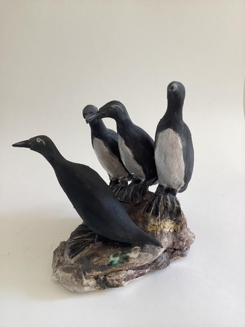 Gannets – Earthenware with oxides, underglazes and smoke firing